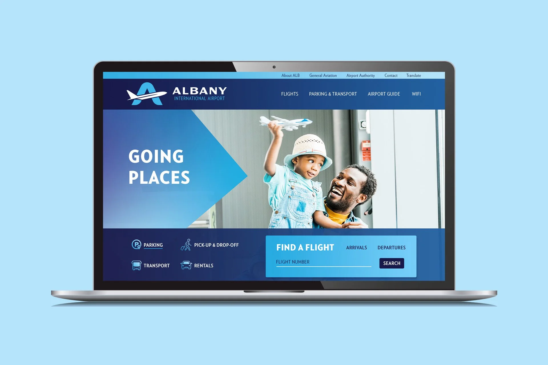 Albany International Airport was working to redefine what people expect from a regional airport. With a new master plan in place and major technology investments underway, the airport was focused on creating a “small airport of the future” — one that felt safer, easier to navigate, and better equipped for modern travel. In the wake of COVID, that vision carried even more weight, as safety perception and traveler confidence became central to the experience. The airport’s 90s-era identity and website no longer reflected the scale of those improvements or the future they were trying to build toward. The challenge was to create a more modern brand and digital presence that could better communicate trust, ease, and a clear sense of forward momentum.